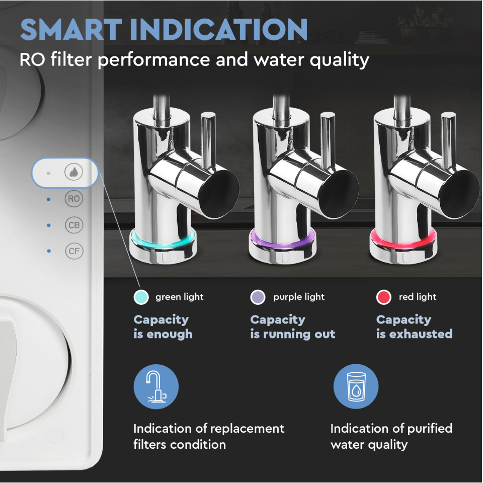 - Indication intelligente – rappel de la durée de vie du filtre et de la qualité de l'eau