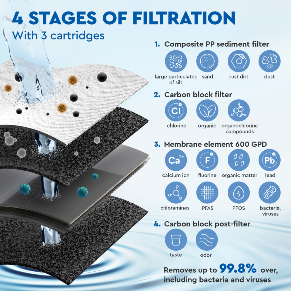 Filtre à osmose inverse à flux direct Ecosoft CROSS90